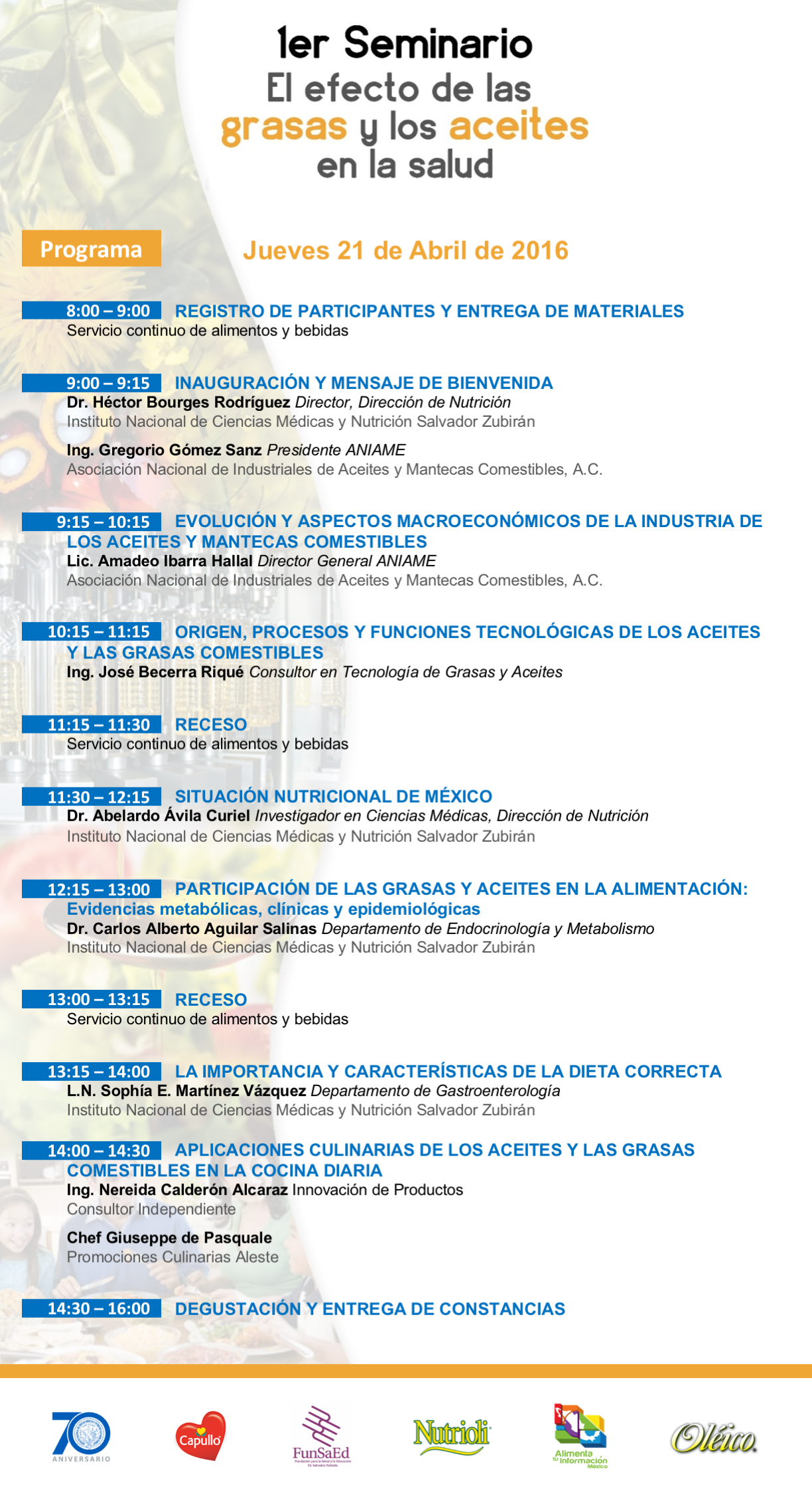 - “Participación de las grasas y aceites en la alimentación: Evidencias metabólicas, clínicas y epidemiológicas” – Dr. Carlos Alberto Aguilar Salinas